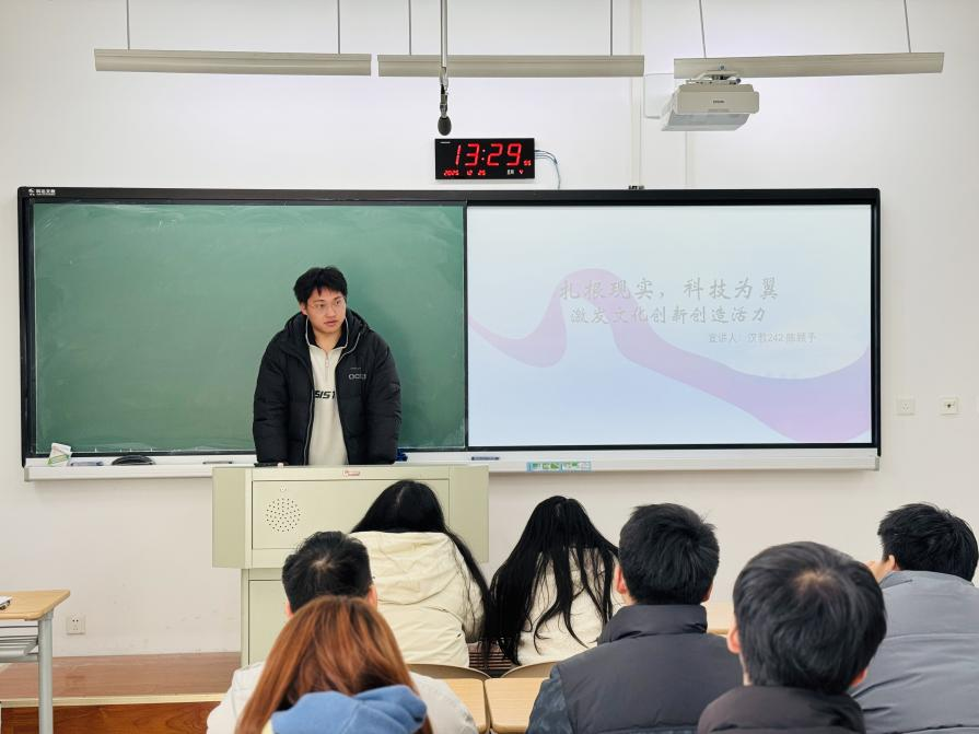 陈顾予同学聚焦文化创新,分析《人世间》《山海情》等作品引发共鸣的原因——扎根人民生活、刻画平凡命运,实现“以文化人”。他认为,在数字技术快速发展的今天,文化表达方式更应与时俱进,让优秀传统文化真正活起来、传下去。