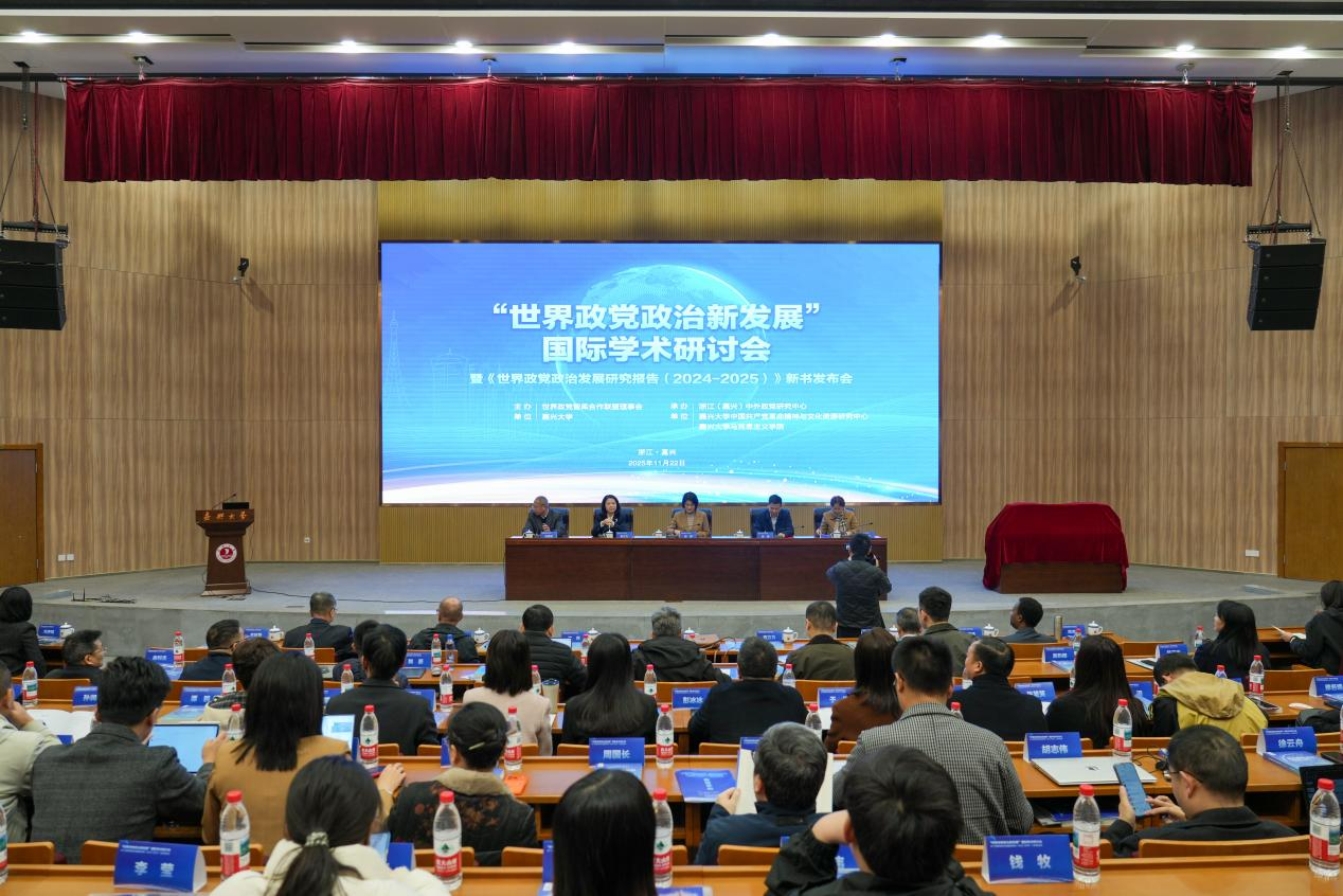 承办的 “世界政党政治新发展”国际学术研讨会暨《世界政党政治发展研究报告(2024-2025)》新书发布会在嘉兴大学举行。嘉兴大学党委书记沈希,中共中央对外联络部研究室副主任赵静,嘉兴大学党委副书记、电竞博彩app推荐